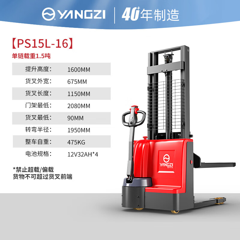 揚子全電動堆高車PSL,智能手柄舒心操作,加強型油缸/防撞緩沖設(shè)計/品牌電池