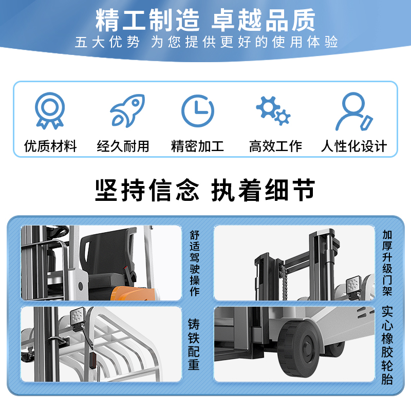 揚子三支點座駕式平衡重電動叉車CPD-A,動力強能耗低免維護低噪音,車身小巧/全車LED警示燈/制動雙保險