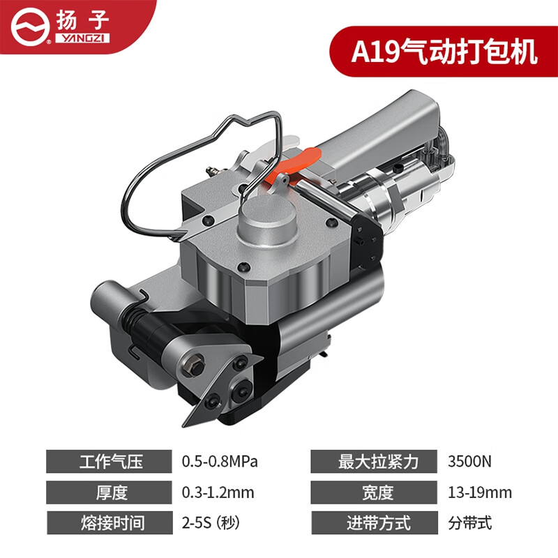 揚(yáng)子氣動(dòng)打包機(jī),全新摩擦熱熔技術(shù),3500N強(qiáng)勁拉力,便攜手提設(shè)計(jì)。